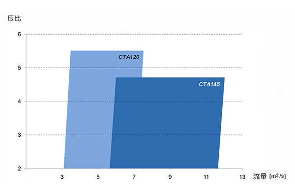 > 最高壓比超過 5.5,流量范圍寬廣,整機最高效率 > 70%;